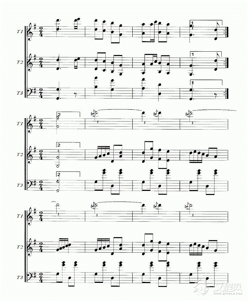 曲谱大全扬琴曲谱:二对四双声部练习曲