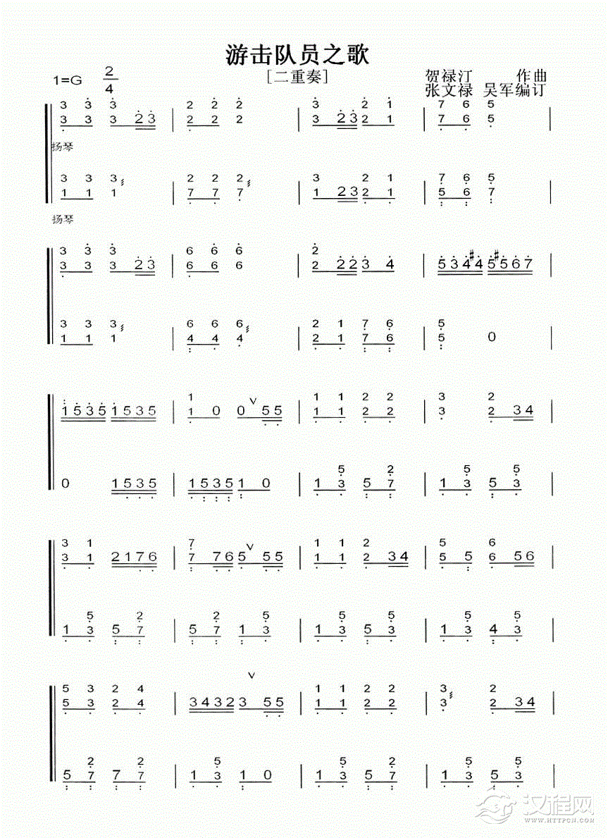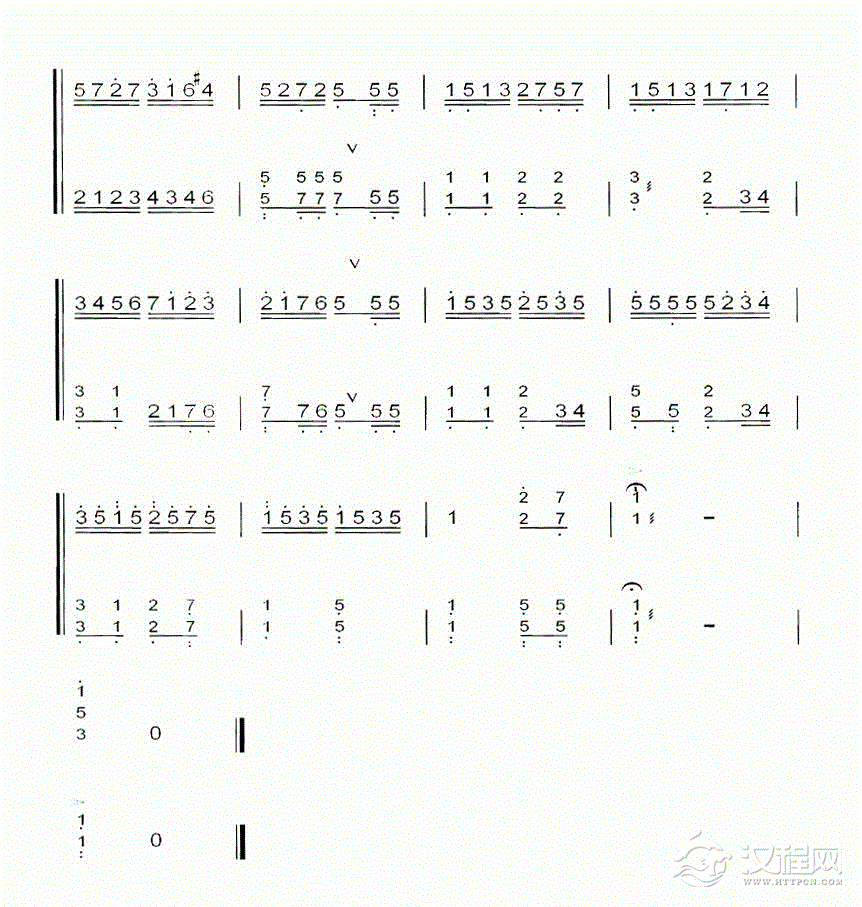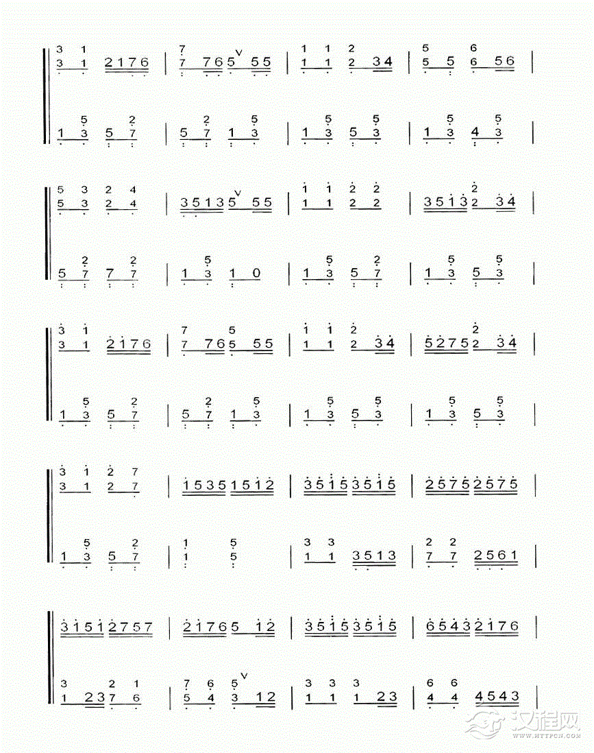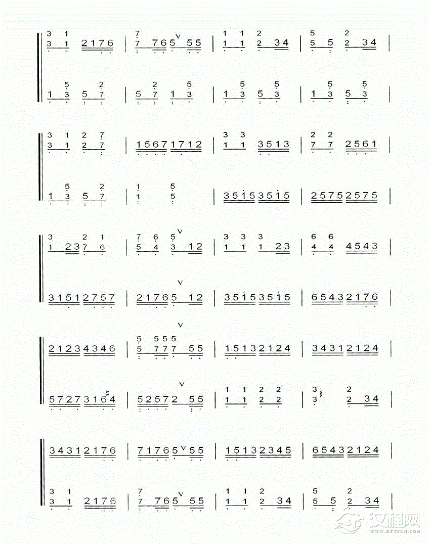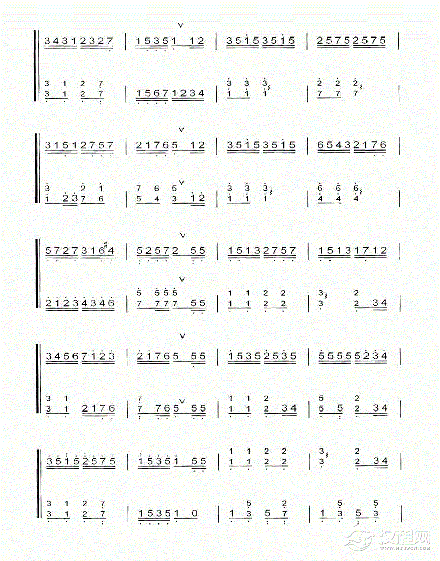 曲谱大全扬琴曲谱:二对四双声部练习曲