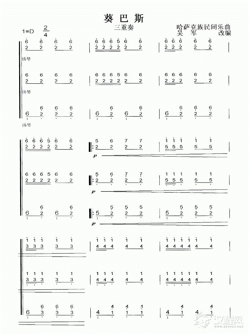扬琴曲谱:葵巴斯