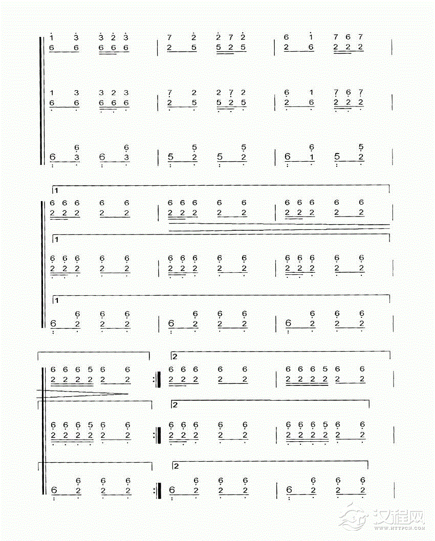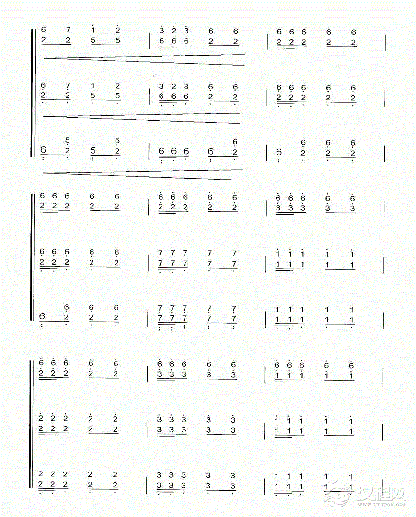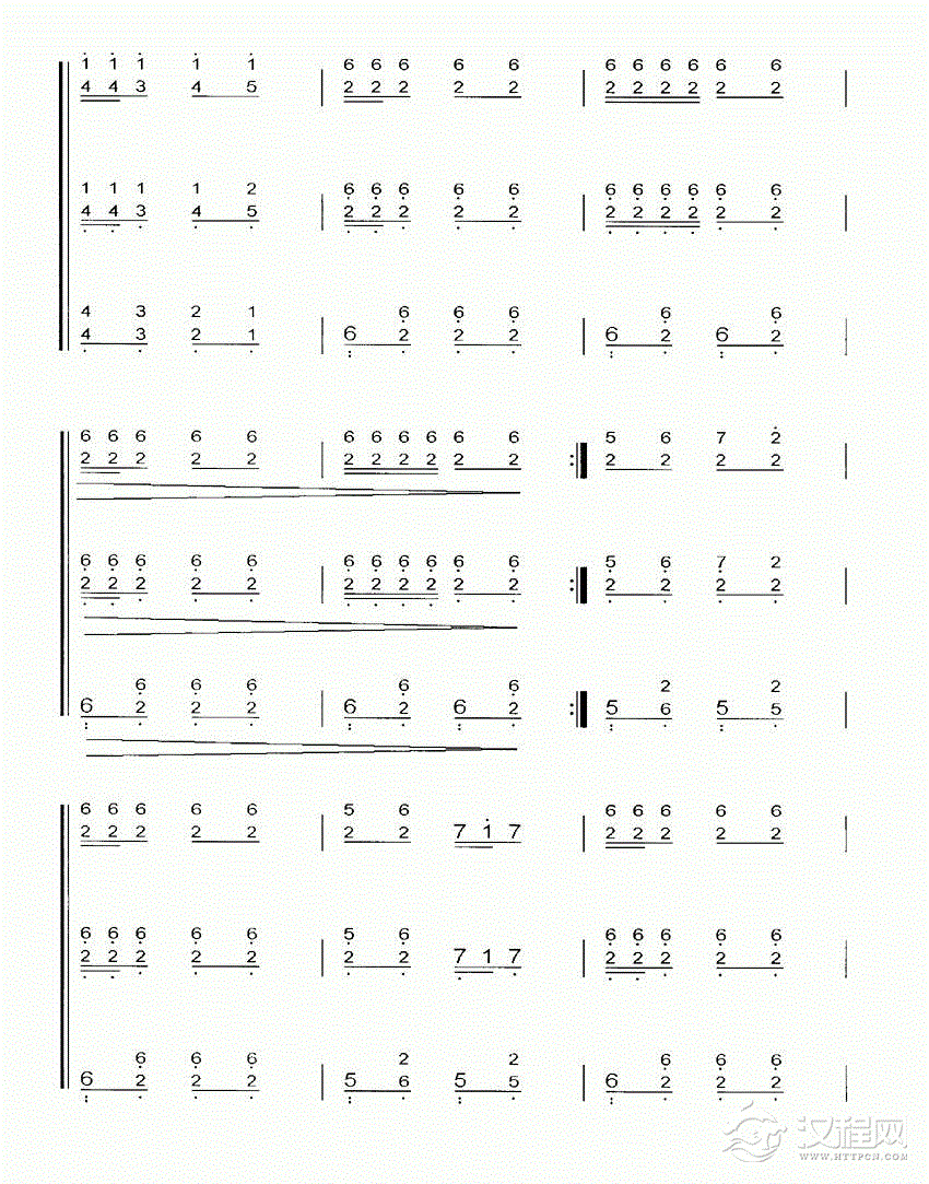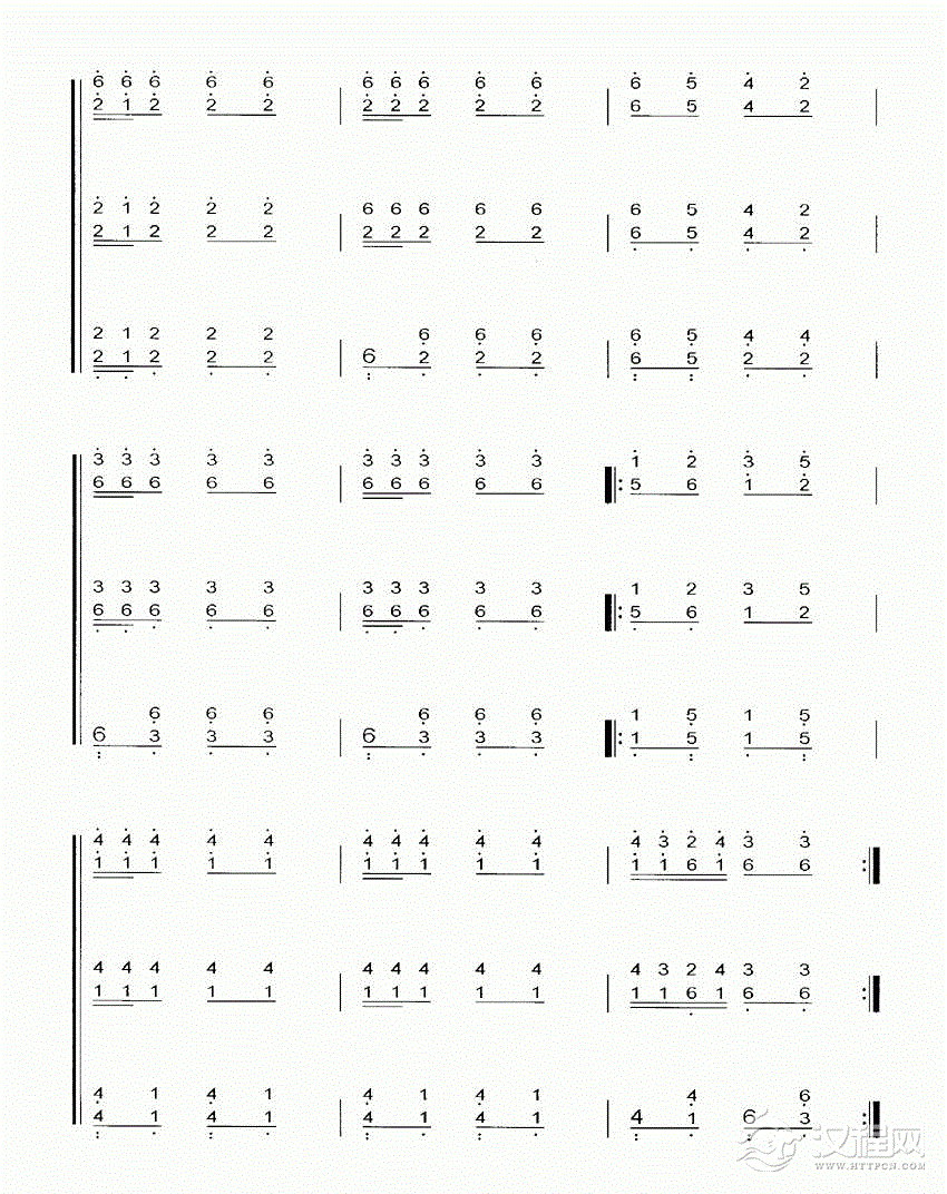 扬琴曲谱:二对四双声部练习曲