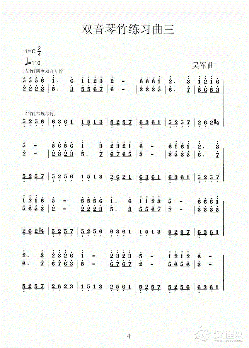曲谱大全扬琴曲谱:扬琴双音琴竹练习曲30首之四