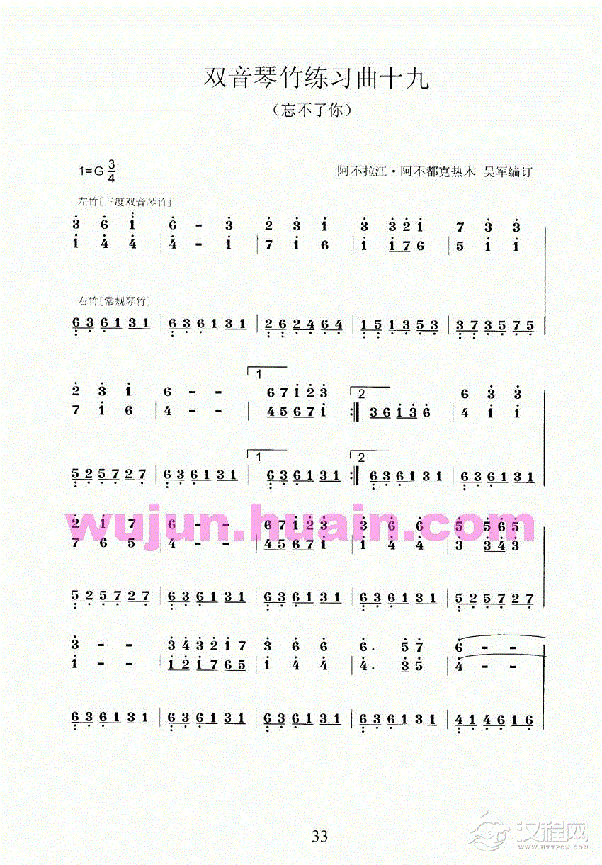 曲谱大全扬琴曲谱:扬琴双音琴竹练习曲30首之二十