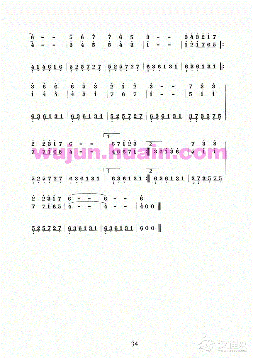 曲谱大全扬琴曲谱:扬琴双音琴竹练习曲30首之三十