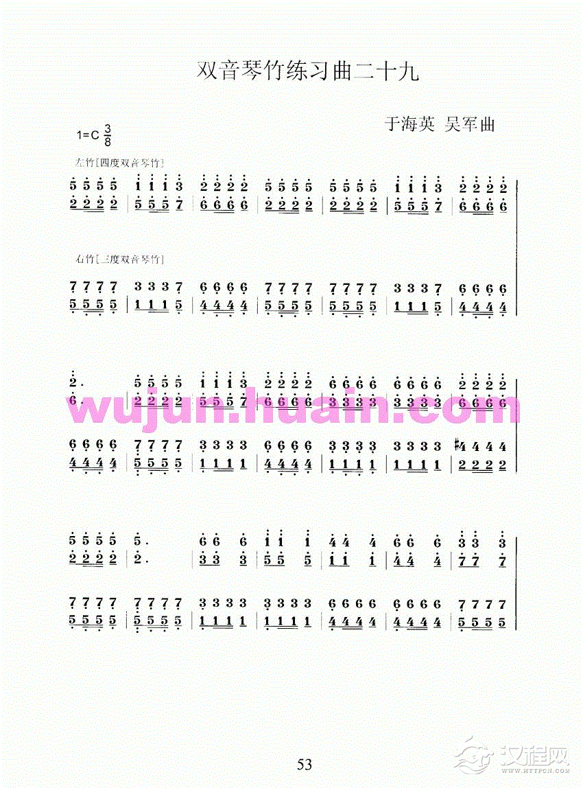 曲谱大全扬琴曲谱:扬琴双音琴竹练习曲30首之十九