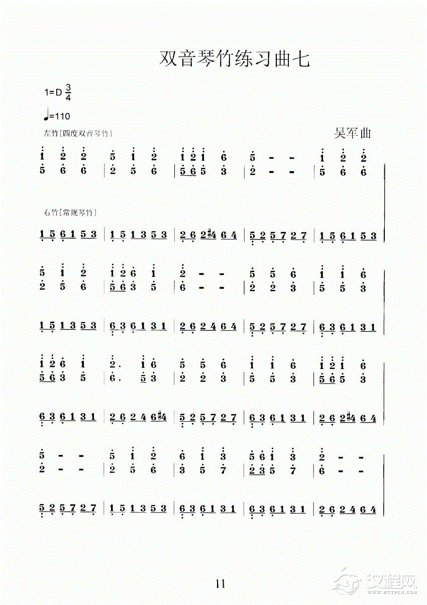 曲谱大全扬琴曲谱:扬琴双音琴竹练习曲30首之二十七