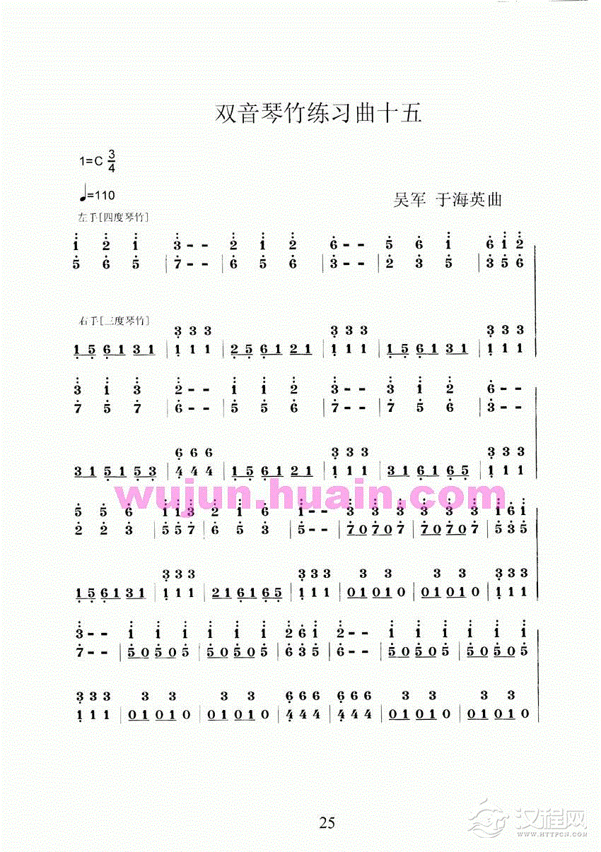 曲谱大全扬琴曲谱:扬琴双音琴竹练习曲30首之二十六