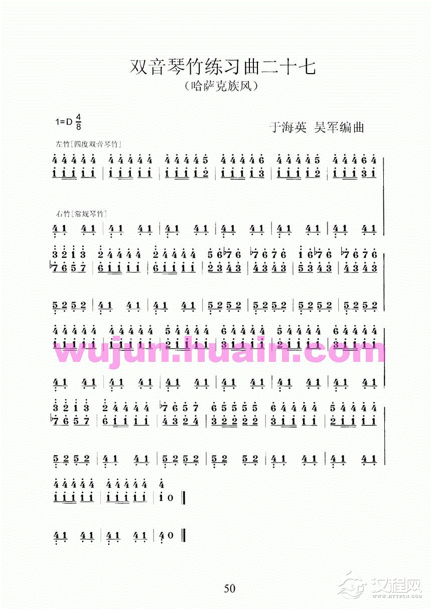 曲谱大全扬琴曲谱:扬琴双音琴竹练习曲30首之二十六