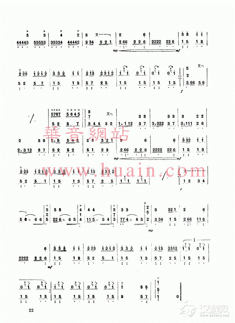 曲谱大全扬琴曲谱:扬琴双音琴竹练习曲30首之二十二