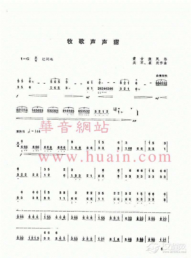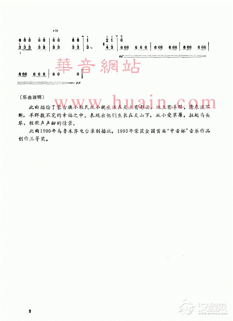 曲谱大全扬琴曲谱:草原小骑士