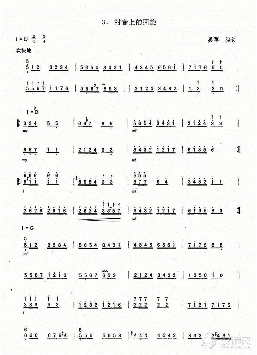 曲谱大全扬琴曲谱:交替竹与衬音练习曲