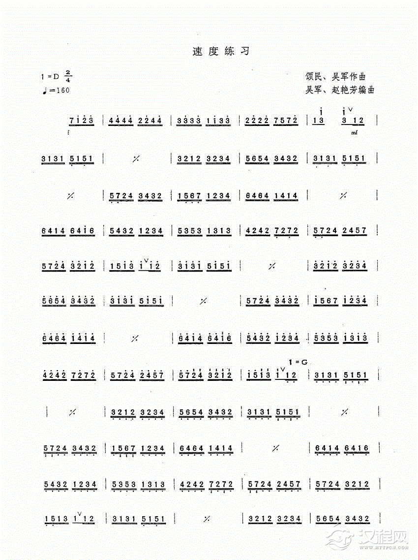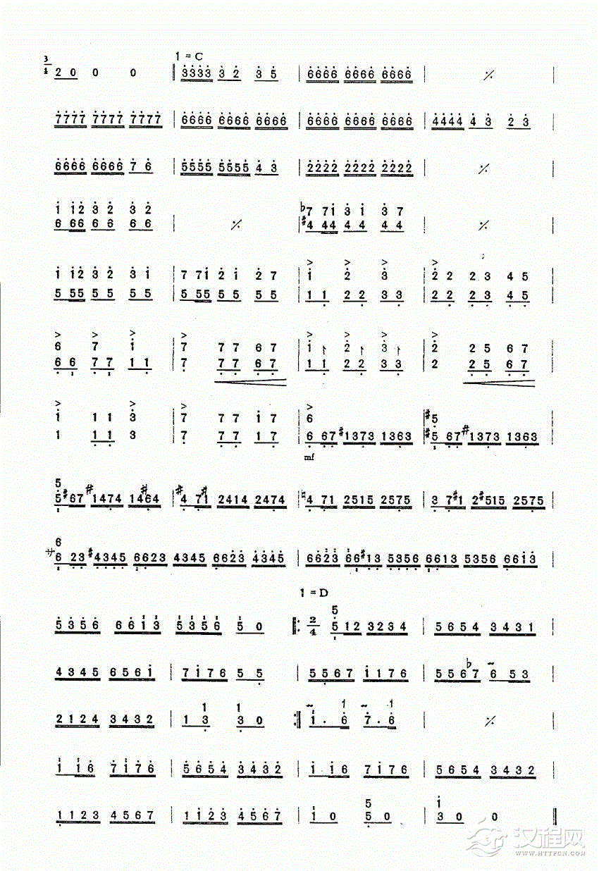 曲谱大全扬琴曲谱:八度双音练习曲
