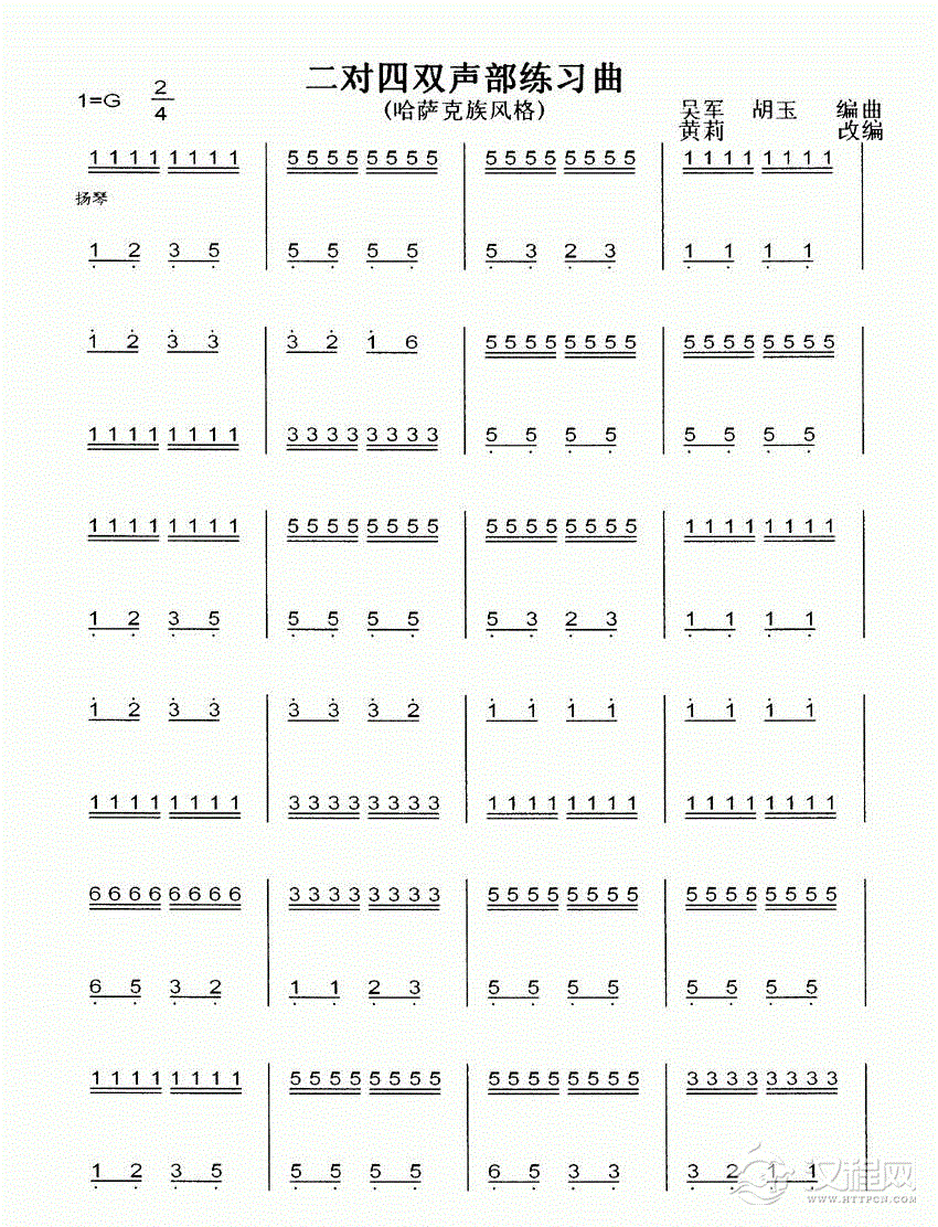 曲谱大全扬琴曲谱:左手四度双音竹练习曲一