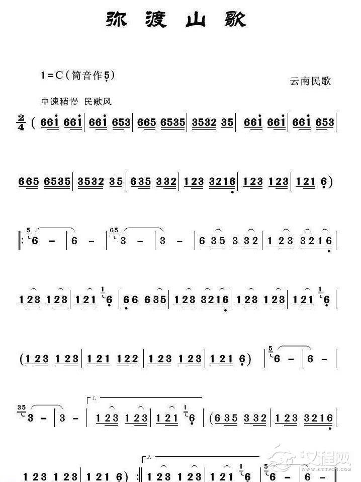 曲谱大全葫芦丝曲谱:姑娘生来爱唱歌