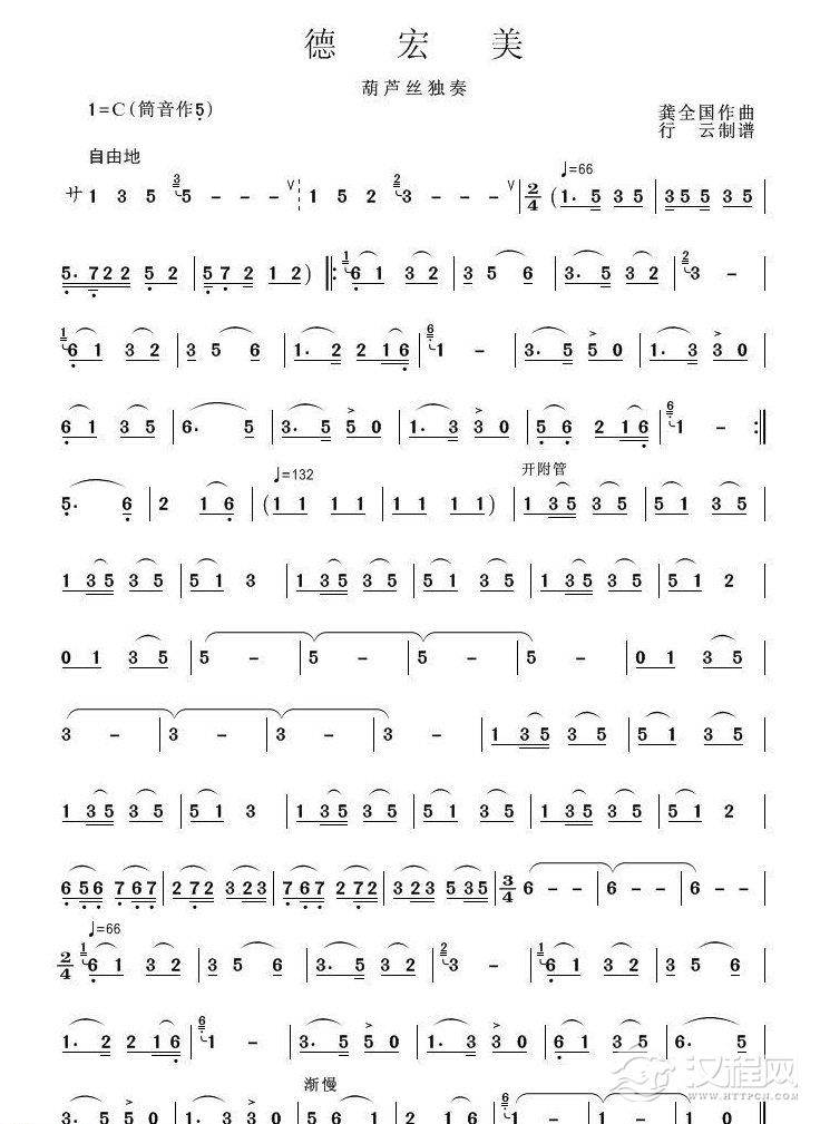 曲谱大全葫芦丝曲谱:侗乡之春