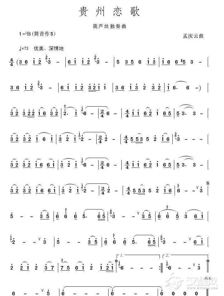 曲谱大全葫芦丝曲谱:侗乡之春
