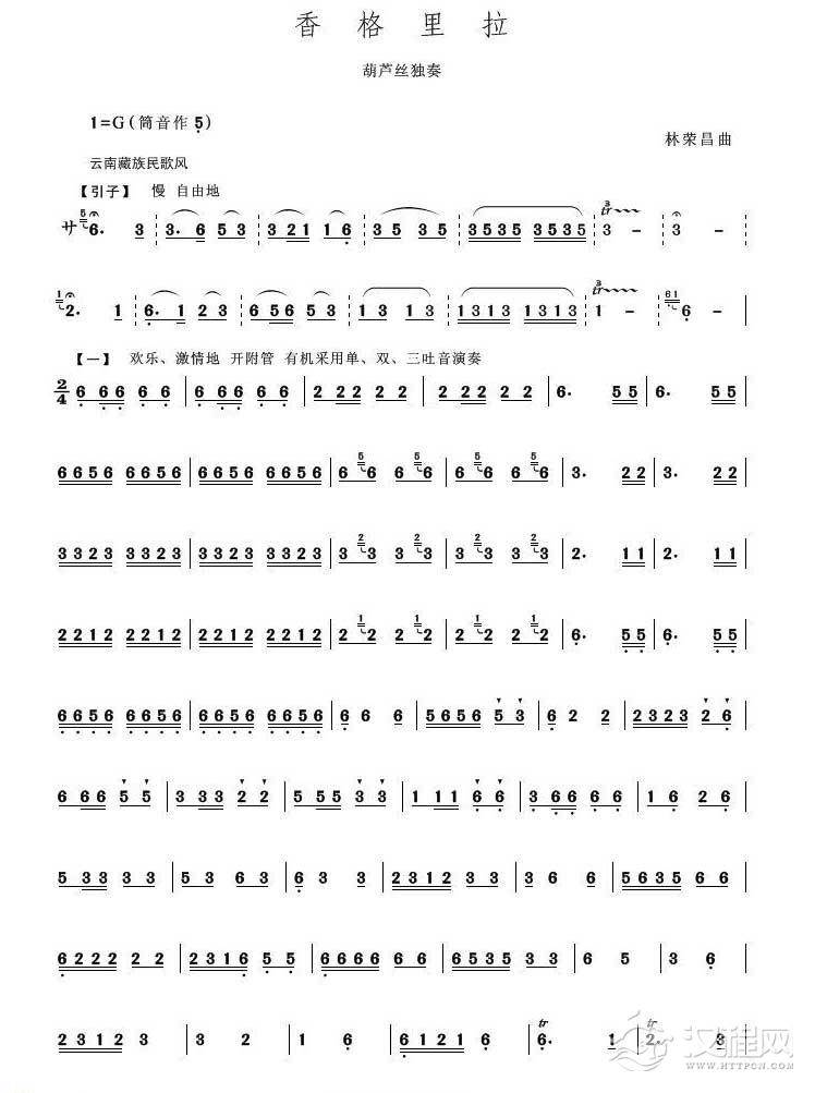 曲谱大全葫芦丝曲谱:摇风