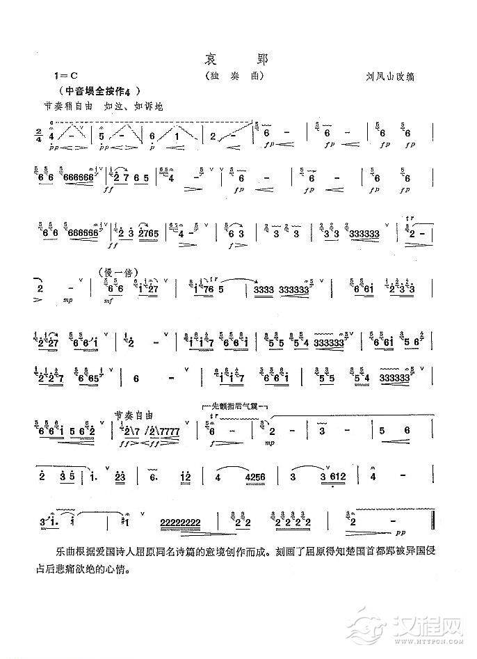 曲谱大全埙歌谱:在水一方