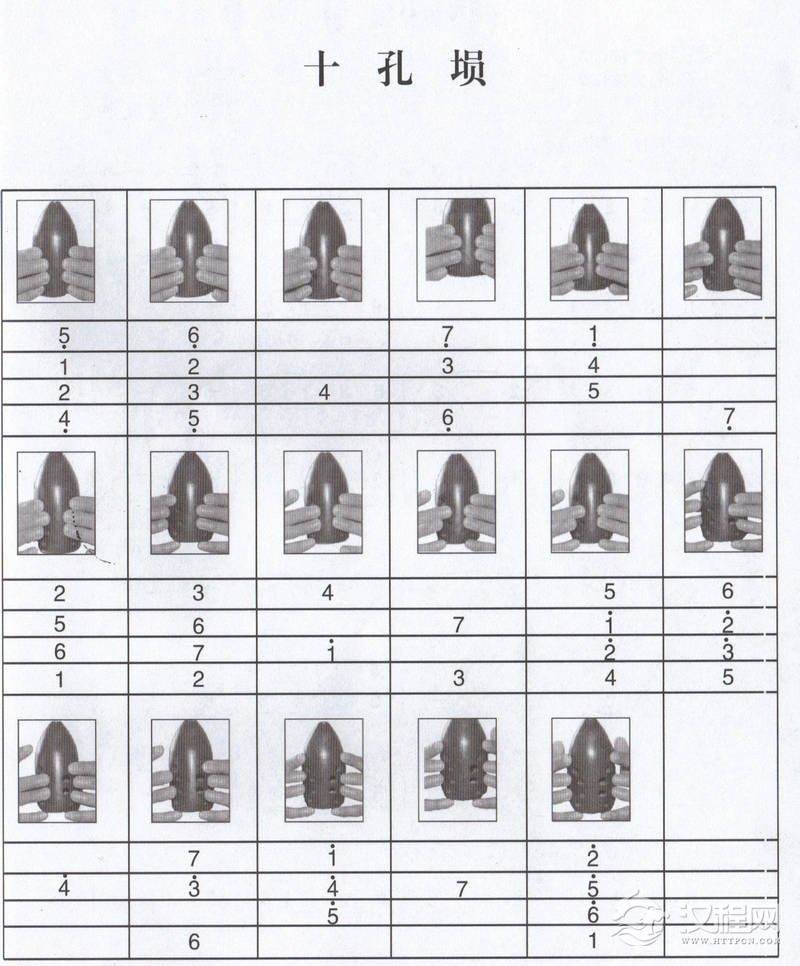 乐器学习八孔-九孔-十孔陶埙指法音阶图