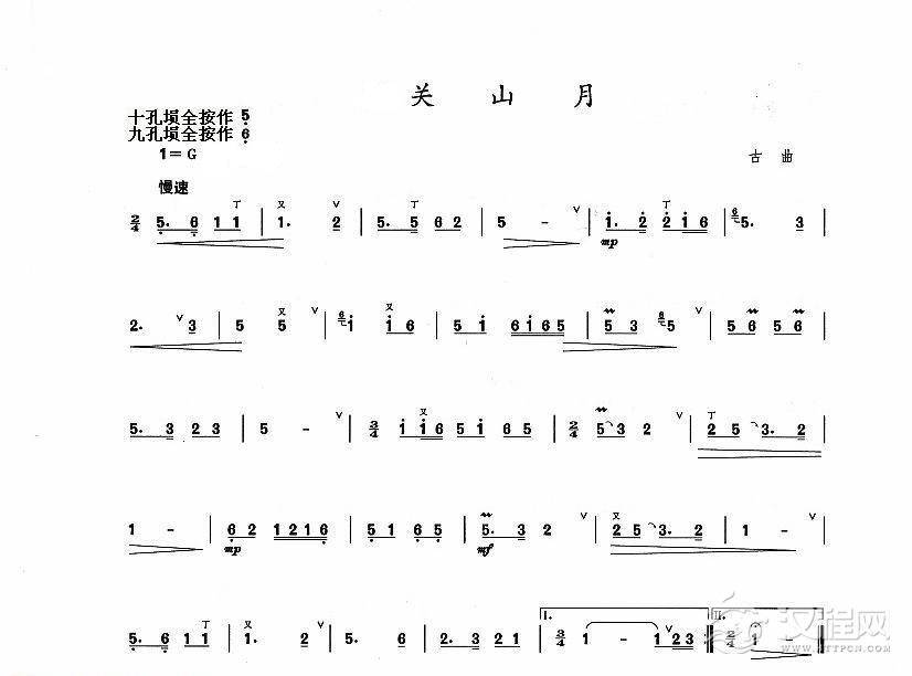 曲谱大全八孔埙演奏曲谱:半个月亮爬上来