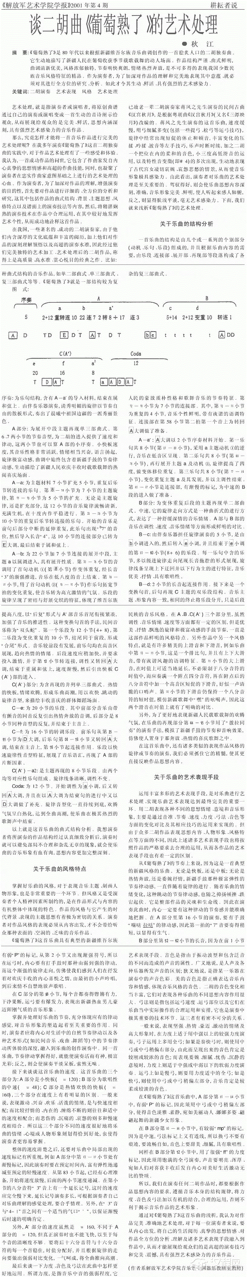 谈二胡曲《葡萄熟了》的艺术处理