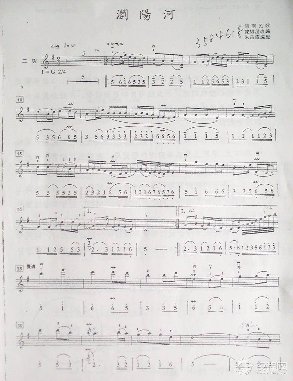 二胡谱:浏阳河 五线谱
