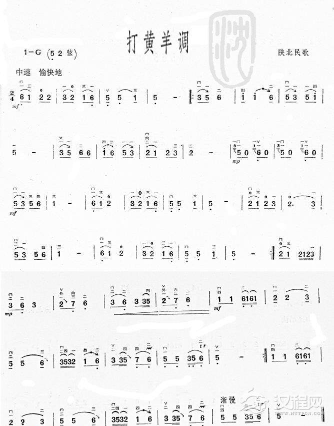 曲谱大全二胡谱:打南沟岔(陕西民歌)