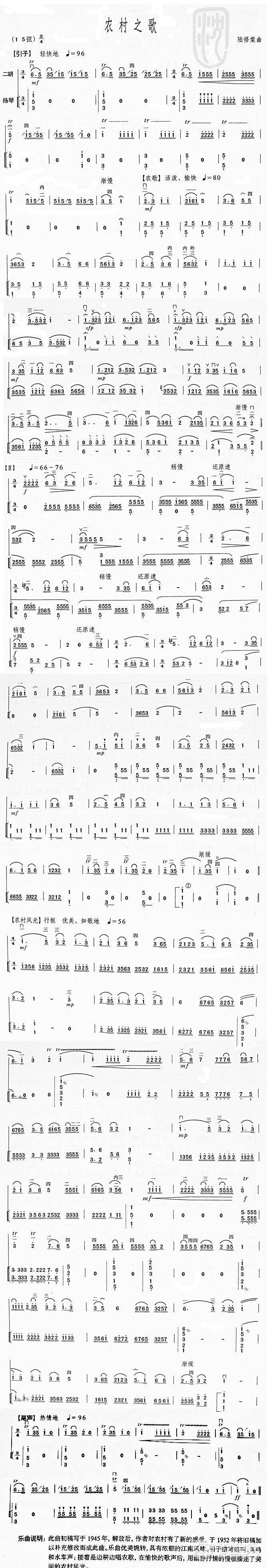 二胡谱:农村之歌