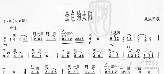 二胡谱:金色的太阳