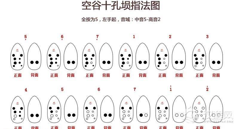 乐器学习左起八孔埙中音1-高音4指法图
