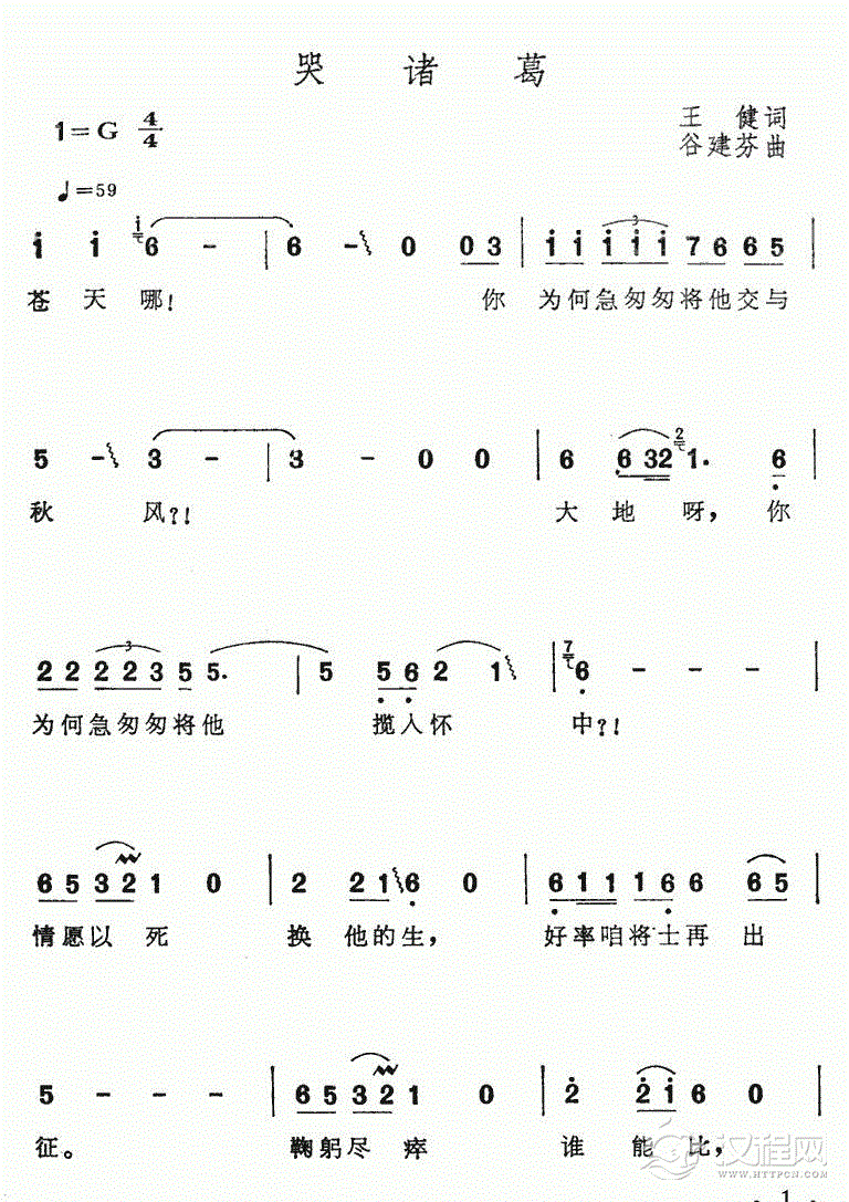埙歌谱:哭诸葛