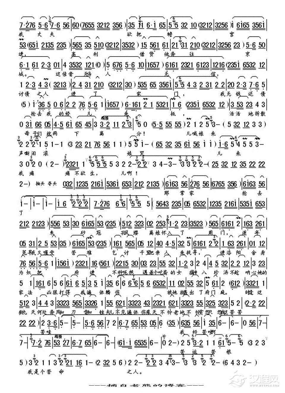 戏曲曲谱[秦腔]手捧糠碗珠泪滚(《丹青泪》赵五娘唱段)