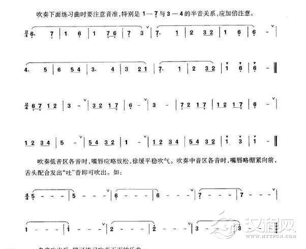 乐器学习箫发音和吹奏练习谱:满江红