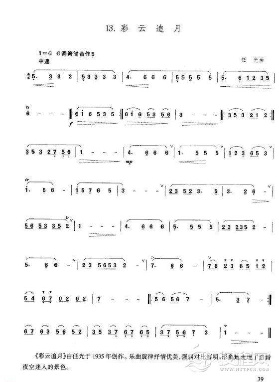 古筝谱《彩云追月》
