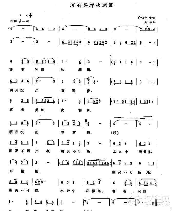 曲谱大全箫歌曲谱:玉箫明月空闲