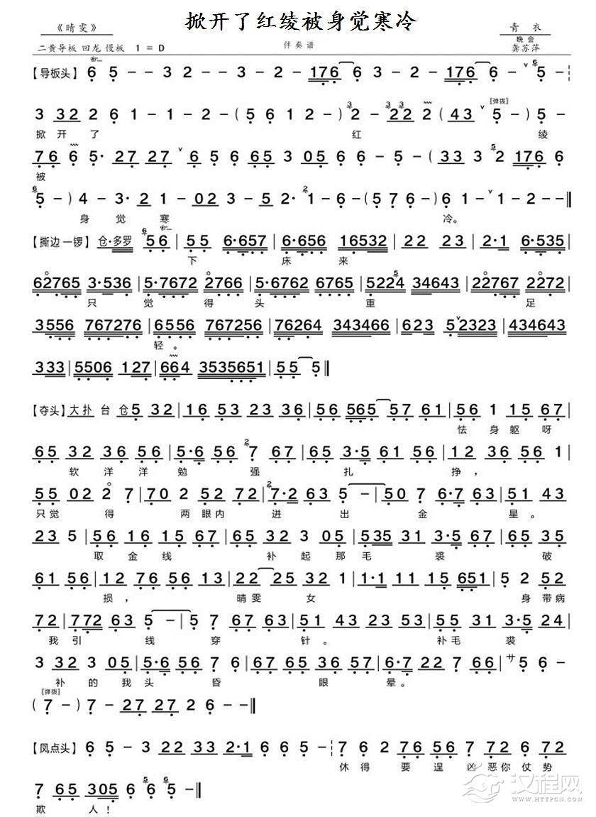 戏曲曲谱晴天霹雳魂飘荡(《秦香莲》秦香莲唱段、琴谱)
