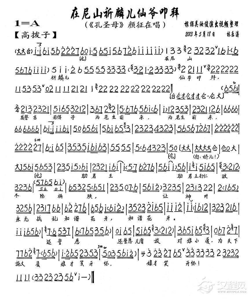 戏曲曲谱先生一言重九鼎(《孔圣母》颜征在唱段、琴谱)