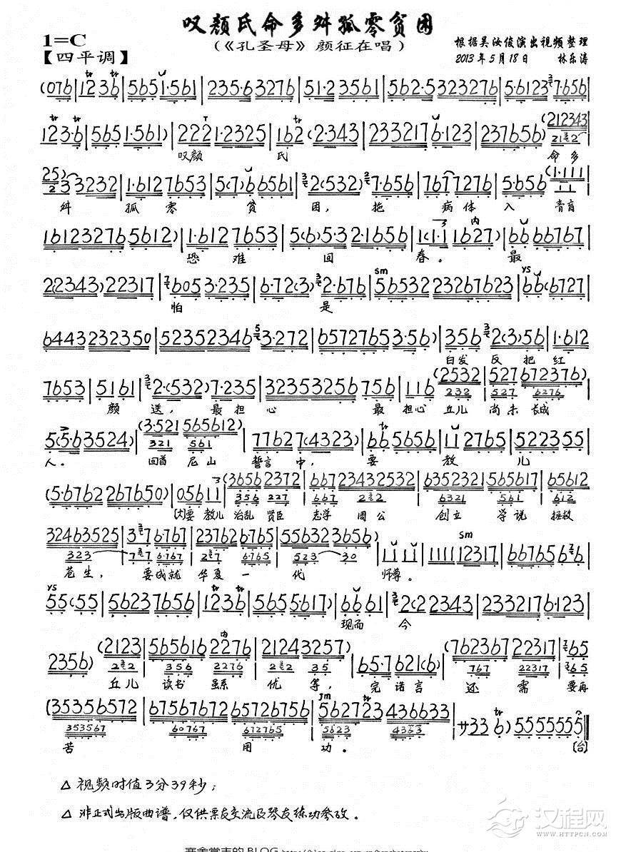 戏曲曲谱三载康丽春常满(《孔圣母》孔纥、颜征在对唱唱段、琴谱)