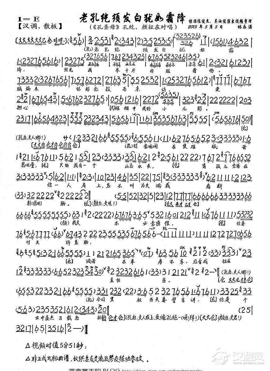戏曲曲谱三载康丽春常满(《孔圣母》孔纥、颜征在对唱唱段、琴谱)