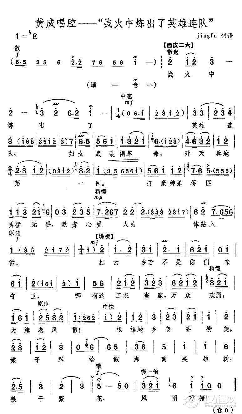 戏曲曲谱硬要闯开路一条(《红色娘子军》选段)