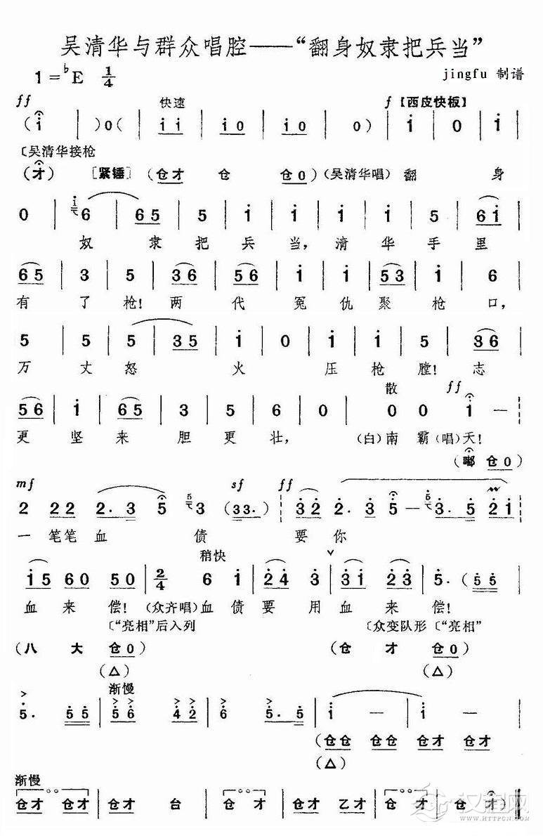 戏曲曲谱迎来朝霞满天(《红色娘子军》洪常青唱段)