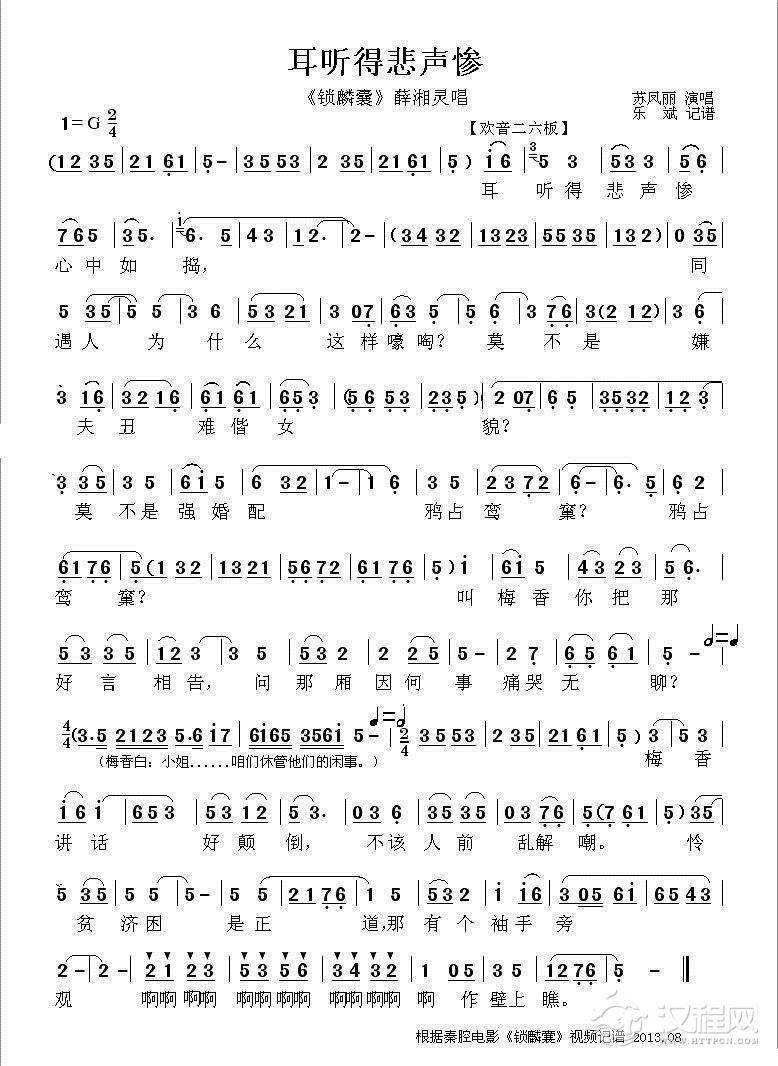 戏曲曲谱[秦腔] 救她饥渴胜琼瑶(《锁麟囊》薛湘灵唱段)