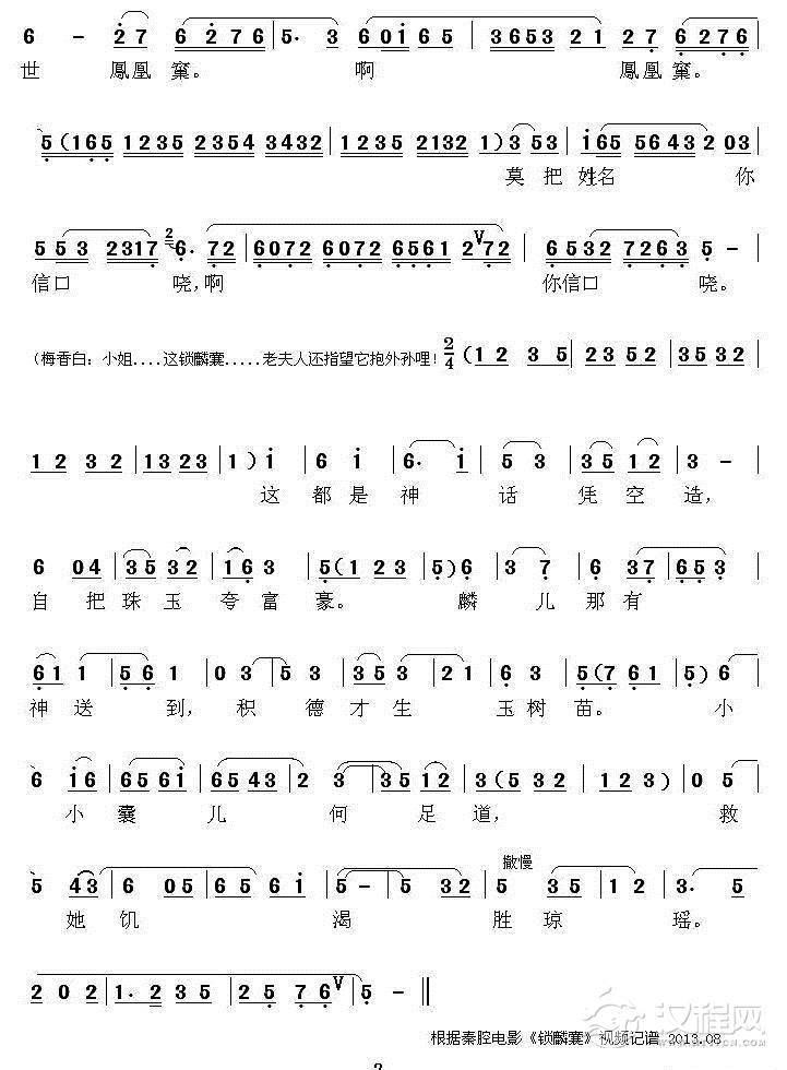 戏曲曲谱[秦腔] 说起此囊不一般(《锁麟囊》薛良唱段)