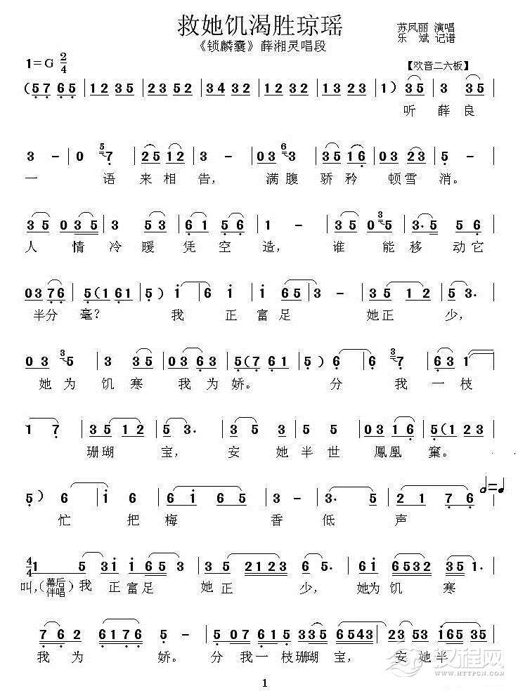戏曲曲谱[秦腔] 耳听得悲声惨(《锁麟囊》薛湘灵唱段)