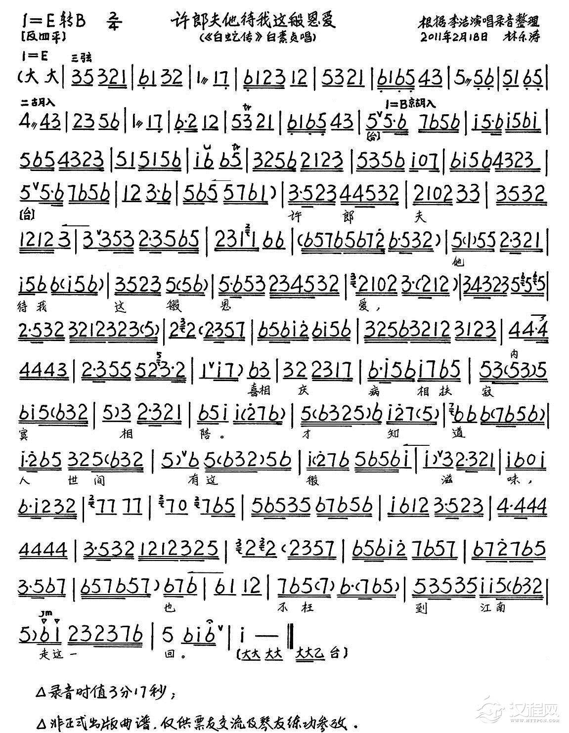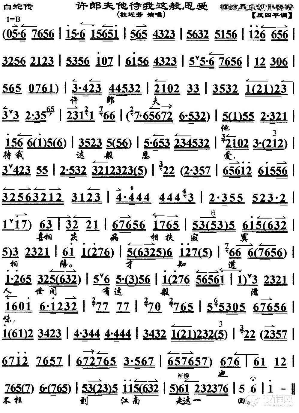 戏曲曲谱雨过天睛湖山如洗(《白蛇传》选段)