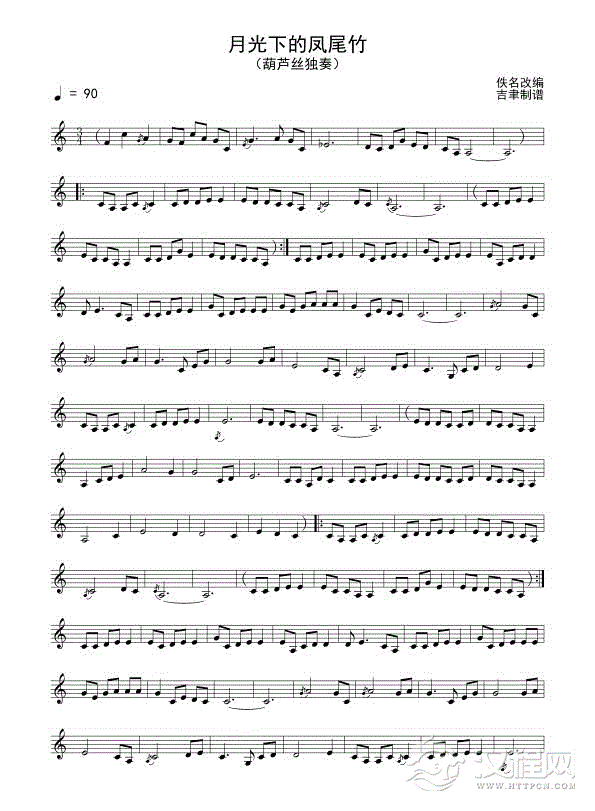 曲谱大全美丽的金孔雀(葫芦丝)线谱