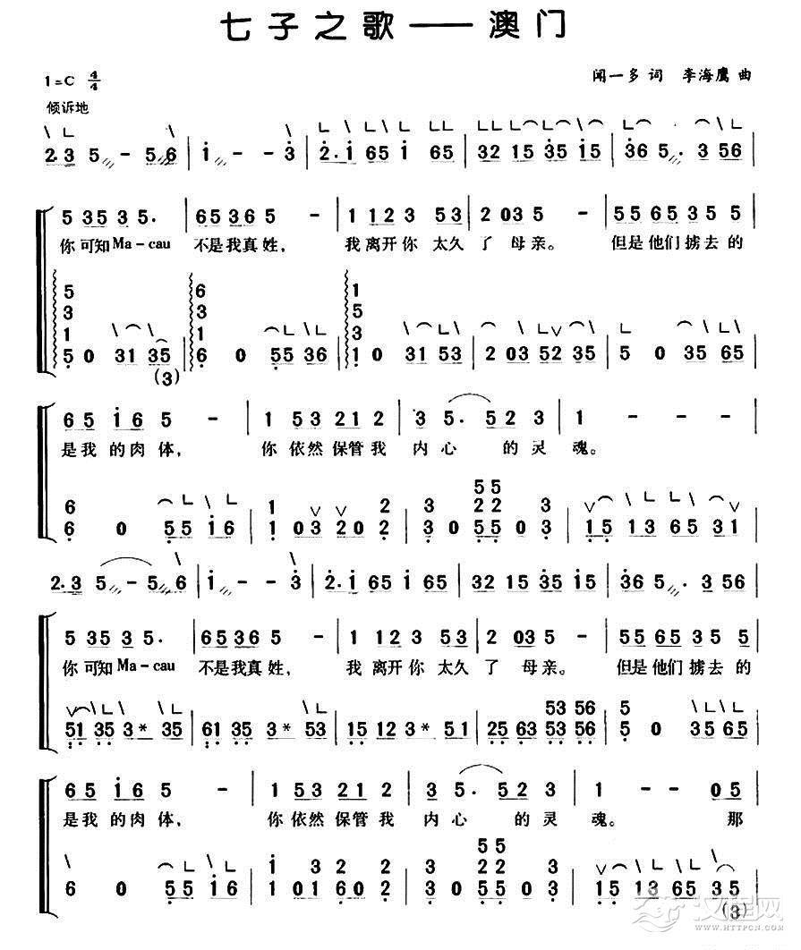 古筝谱《彩云追月》