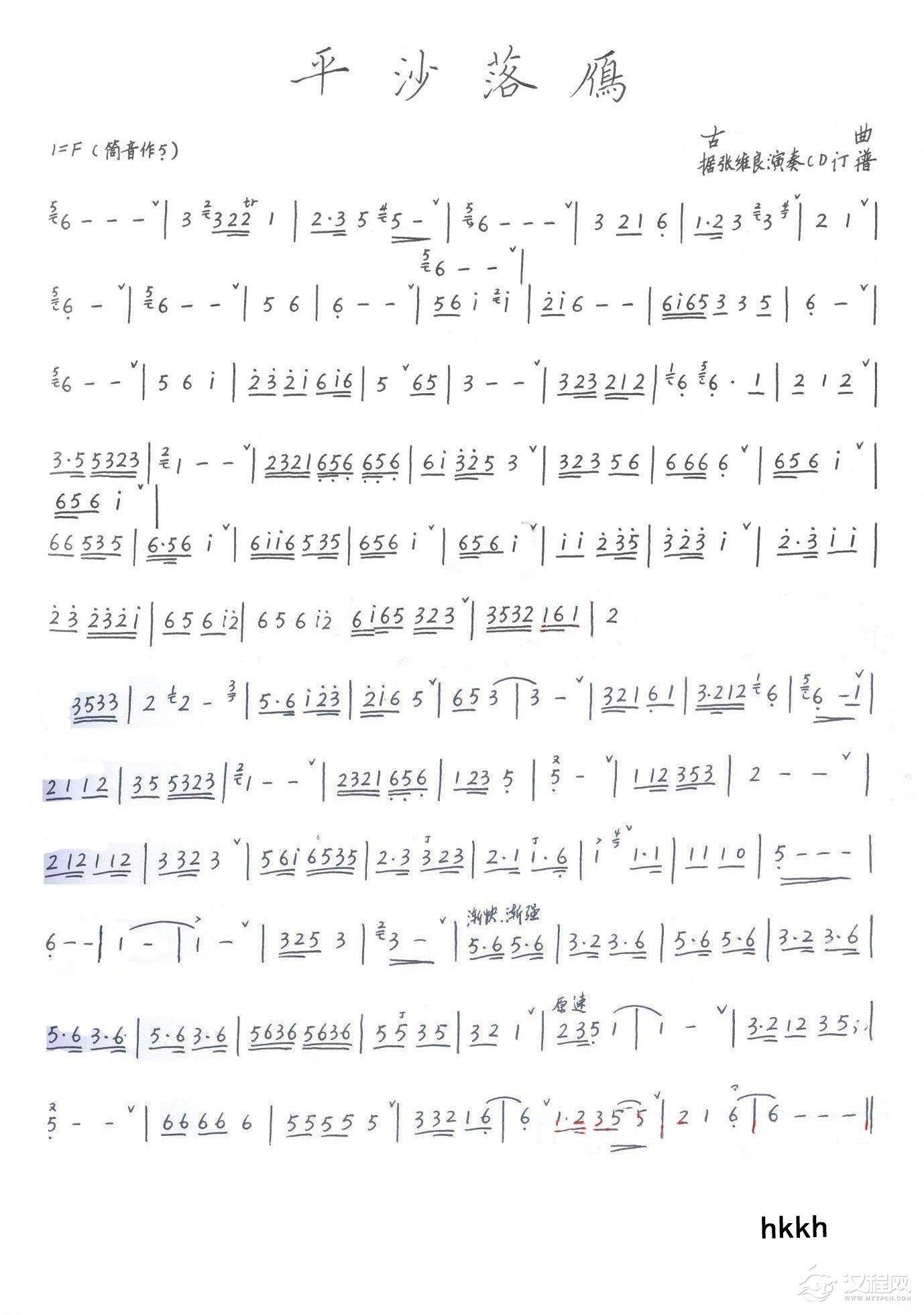 洞箫谱 平沙落雁-张维良版