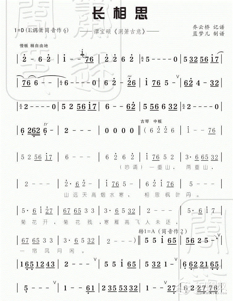 曲谱大全洞箫谱 水龙吟 登健康赏心亭
