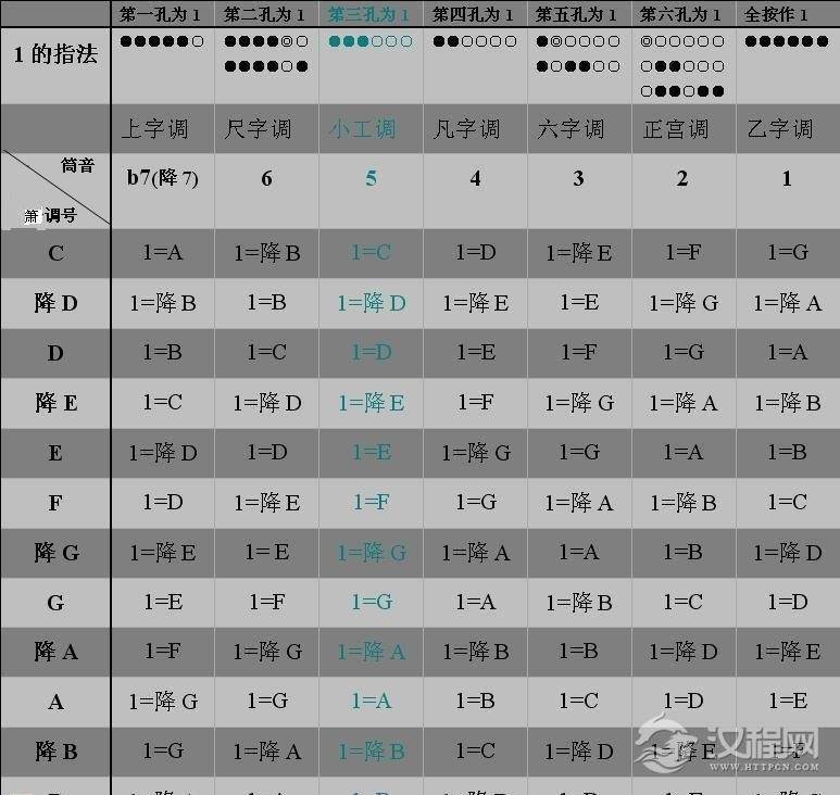 乐器学习洞箫筒音6指法图表