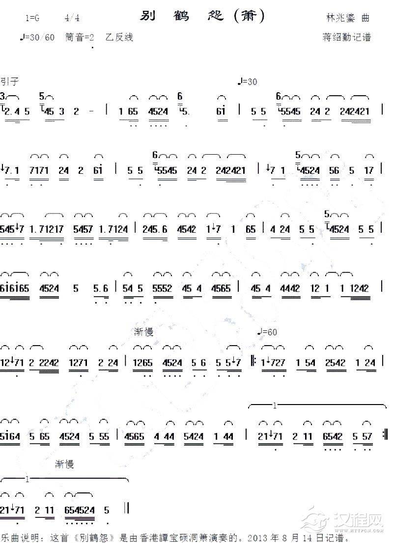 曲谱大全叹香菱 根据谭炎健《洞箫音乐专辑 红楼梦》录音记谱